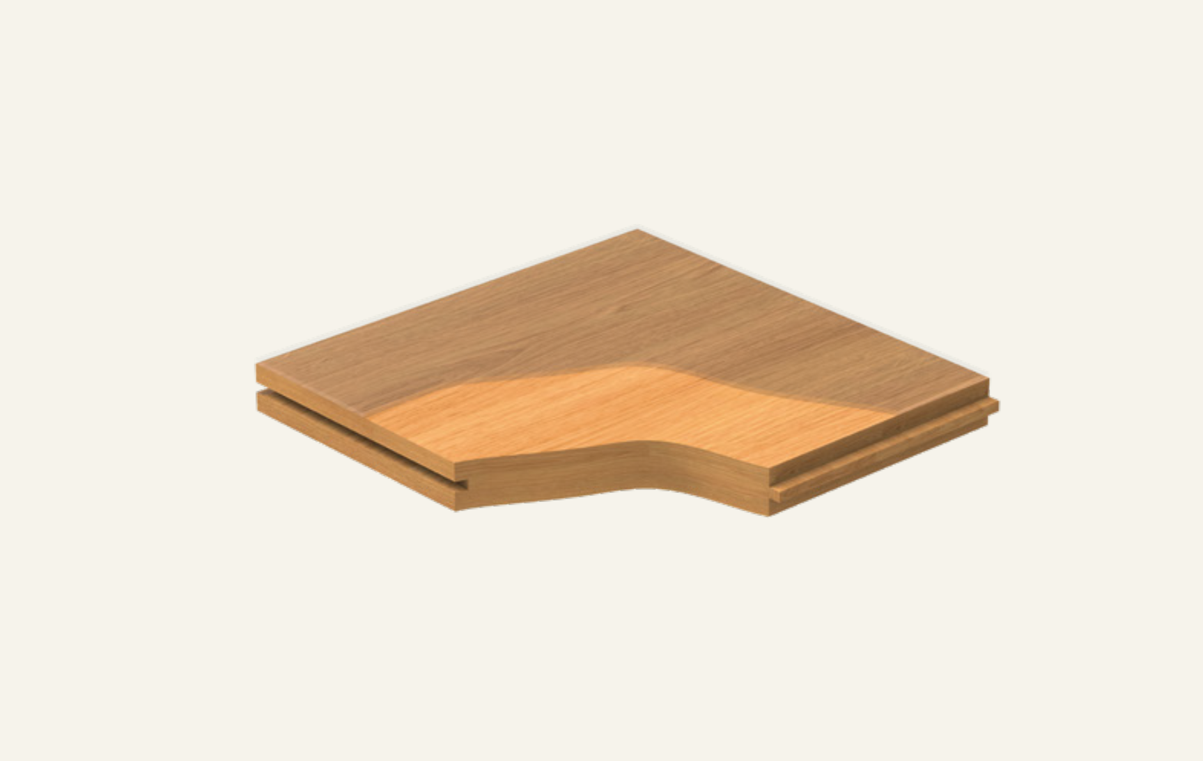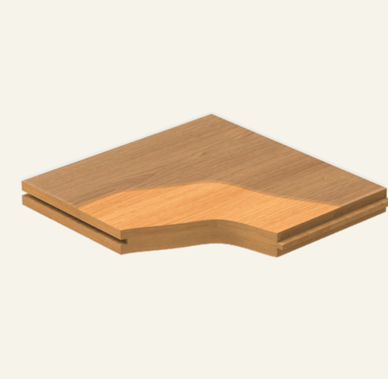 Core layer: Natural Solid Hardwood profiled into wood flooring.